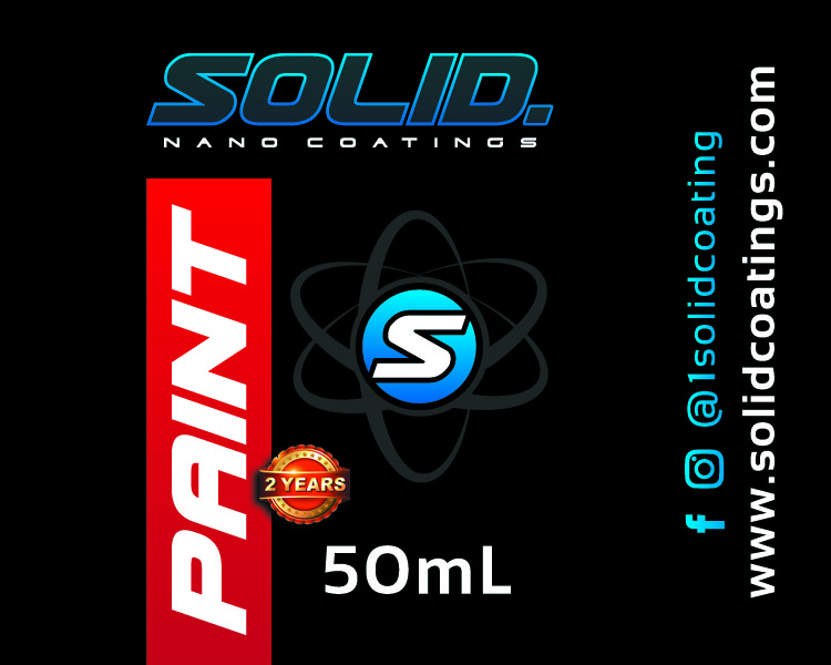 SOLID. PAINT 2 YEAR is a transparent 3D matrix structure helps protect the paint or surface from scratches, graffiti, dirt, aging, premature oxidation, weathering, road salt, rock chips, bugs, bird droppings and even acid rain. It offers excellent scratch, thermal (1382 degrees), UV oxidation, corrosion and chemical resistance. A surface that has been sealed with SOLID. PAINT 2 YEAR stays cleaner for a longer period of time due to its smoothness and hydrophobic qualities. SOLID. PAINT 2 YEAR is Semi-permanent and can only be removed using machine polish. The unique formulation of SOLID. PAINT 2 YEAR COATING has enabled it to be multi-layered which means the thickness of the coating can be increased with additional layers allowing a thicker/harder film that will increase its scratch resistance.
